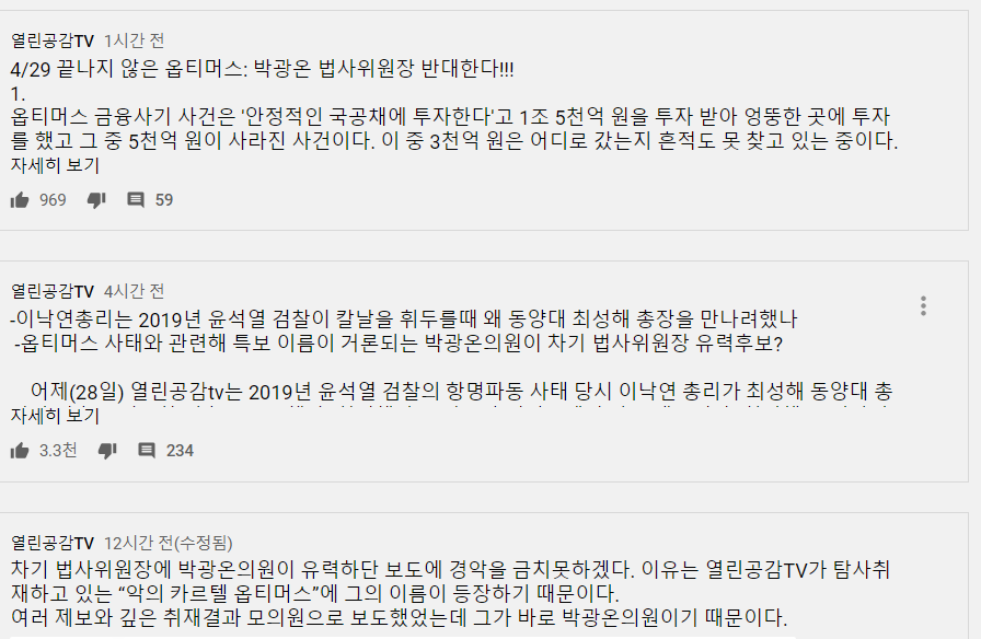 열린공감 화이팅! 언론중에 최고인데 가짜뉴스는 단속안하고 어이가없네요 진실과 정의가 눈가림 되어야 한다면 더 힘내서 싸워야할것같네요ㅠㅡㅠ힘내세요 항상 응원하고 지켜보고있습니다!