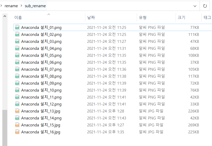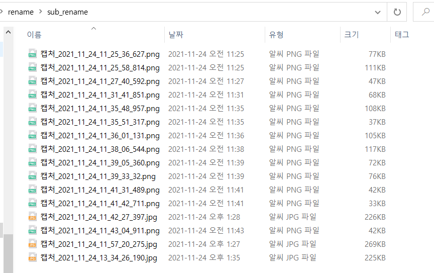폴더에 있는 이미지 파일명 파이썬 파일명 일괄 변경 소스