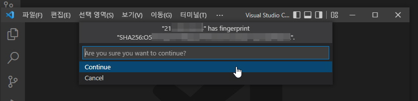 ▶ Continue 선택 (여기서 known_hosts 파일 내용을 읽어서 보여줌)