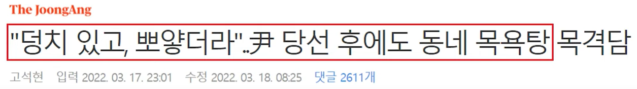 윤석열 김치찌개 윤석열 동네 목욕탕 이러니 기레기 소리를 듣지!!