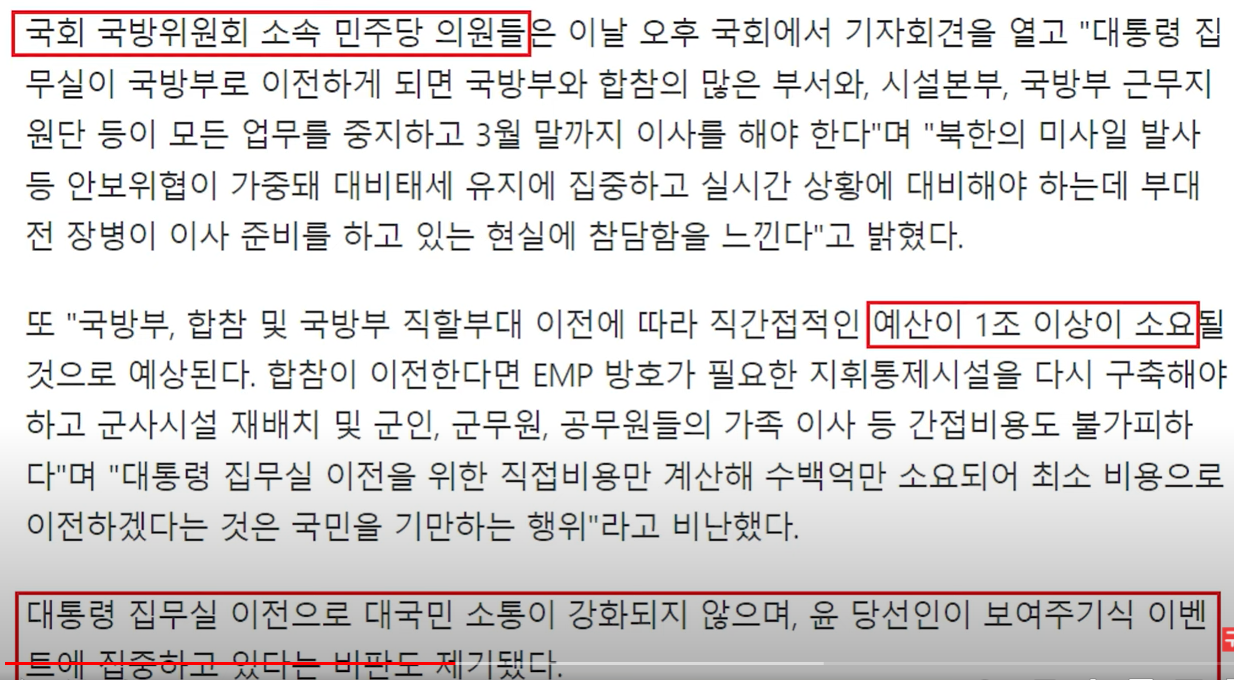 "지금 대통령 집무실 결정을 앞두고 국방부는 혼란 그 자체"
